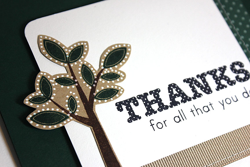 Dotted Tree Thanks Card - detail